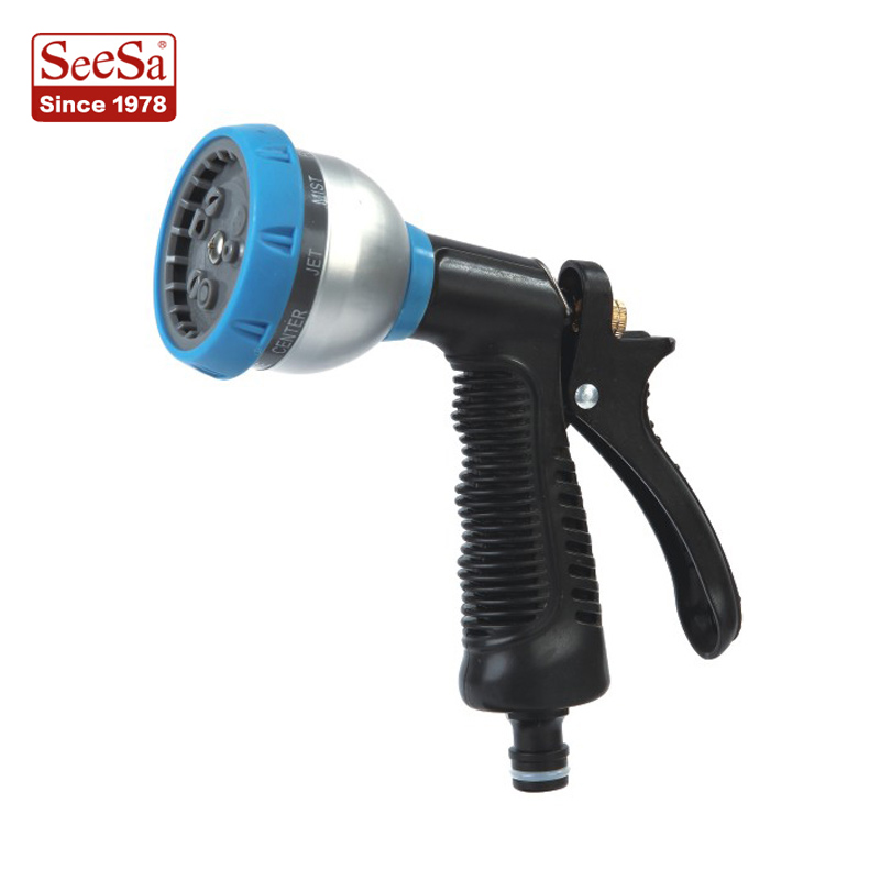 يعتبر مسدس رش الماء من سبائك الألومنيوم SeeSa أداة متعددة الاستخدامات ومتينة للغاية مصممة لمهام تنظيف الفناء المختلفة. مع تسعة أنماط رش قابلة للتعديل، بما في ذلك الرذاذ والنفث والمروحة والمزيد، يمكنها التعامل مع كل شيء بدءًا من سقاية النباتات اللطيفة وحتى تنظيف الممرات الشاقة.