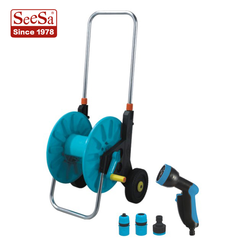 滚动式可伸缩软管卷盘和推车是存放花园软管的便捷实用的解决方案。它提供了一种井井有条、无忧无虑的方式,让您的花园软管在不使用时保持安心可靠。以下是使用滚动式可伸缩软管卷盘和推车的一些好处: