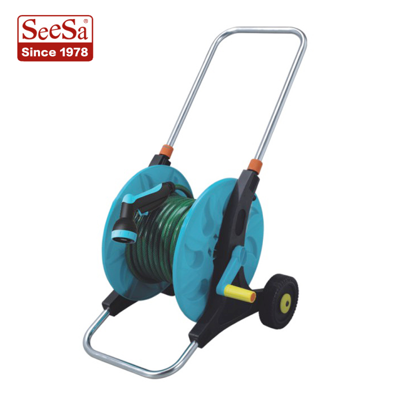 两轮软管卷盘车的优点之一是即使在软管卷盘满载时也能轻松移动。这有助于将推车方便地运输到花园的不同区域,并且在不使用时可以轻松地将其存放在车库或棚屋中。
