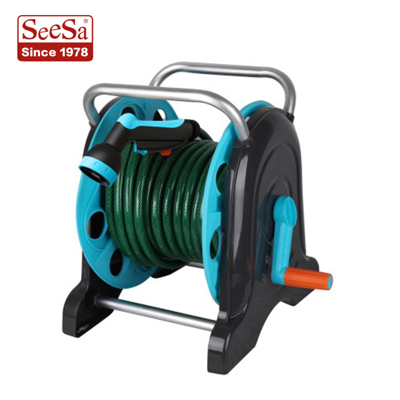 2、坚固、稳定。推车由钢和塑料制成,这些材料坚固耐用。推车可以支撑软管卷盘和水的重量。该车有四个轮子,可以轻松地在任何地形上滚动。该推车还具有制动系统,可以锁定轮子和手柄,以防止软管卷盘移动或翻倒。